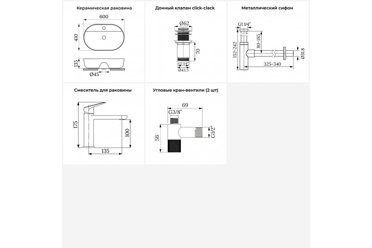 - Керамическая раковина, арт. 326821000 (размер 60*41 см, цвет матовый серый);