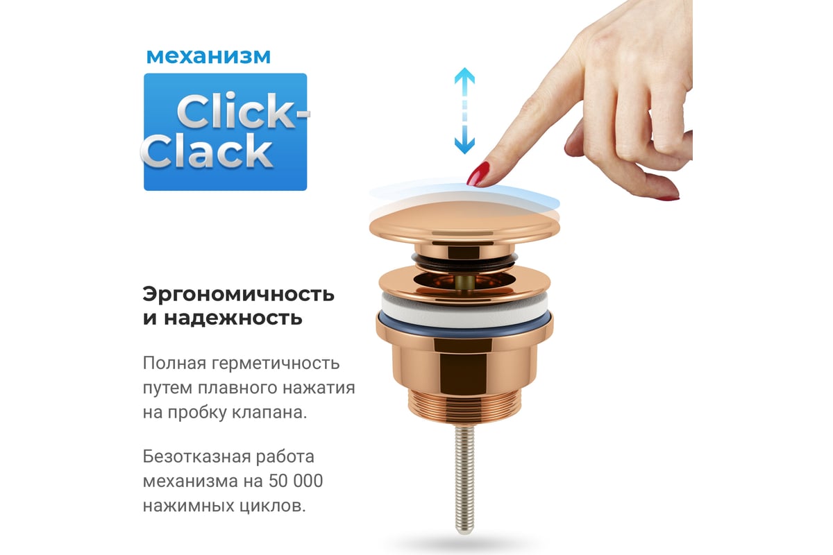 Выполненные из высококачественной латуни сифон и донный клапан отличаются устойчивостью к коррозии и перепадам температур. На их внутренние стенки нанесено защитное покрытие Protect’IN, препятствующее скоплению грязи и оседанию водопроводных примесей и солей. Благодаря эргономичной разборной конструкции прочисть сифон или донный клапан можно всего за несколько минут. Высокая пропускная способность сифона обеспечивает своевременный отток воды, а функция гидрозатвора препятствует проникновению неприятных запахов из канализации. Донный клапан с системой Click-Clack предотвращает попадание мелких предметов в слив.