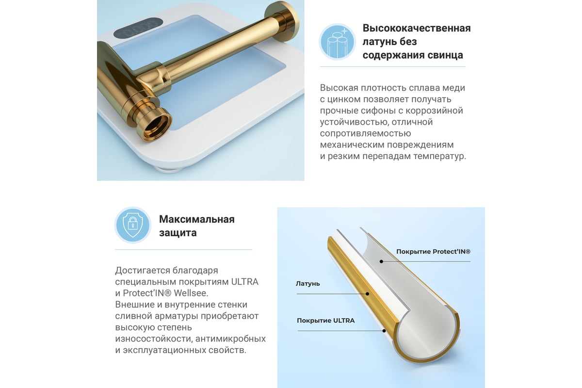 СИФОН И ДОННЫЙ КЛАПАН WELLSEE: СВЕРХПРОЧНЫЕ МАТЕРИАЛЫ И ПОКРЫТИЕ