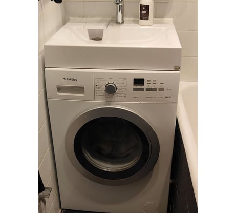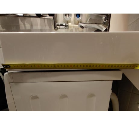 Рекомендуемая производителем максимальная глубина стиральной машины составляет 430 мм, минимальное расстояние между стиральной машиной и раковиной составляет 10 мм.