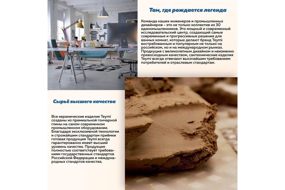 Сантехника Teymi отлично зарекомендовала себя на международном и российском рынке. Все изделия, выпускаемые этой маркой, получают положительные отзывы от покупателей. Широкий ассортимент продукции, многообразие форм и размеров и неизменное качество продукции — вот главные преимущества компании.