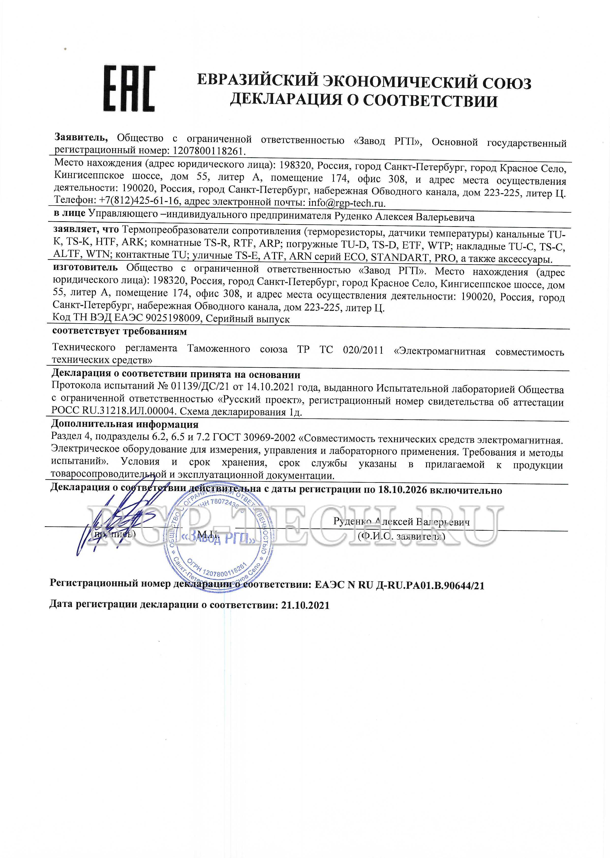 Инструкция датчики температуры RGP STANDART в корпусе.pdf Каталог Декларация Скачать всю документациюРазрешительная документация