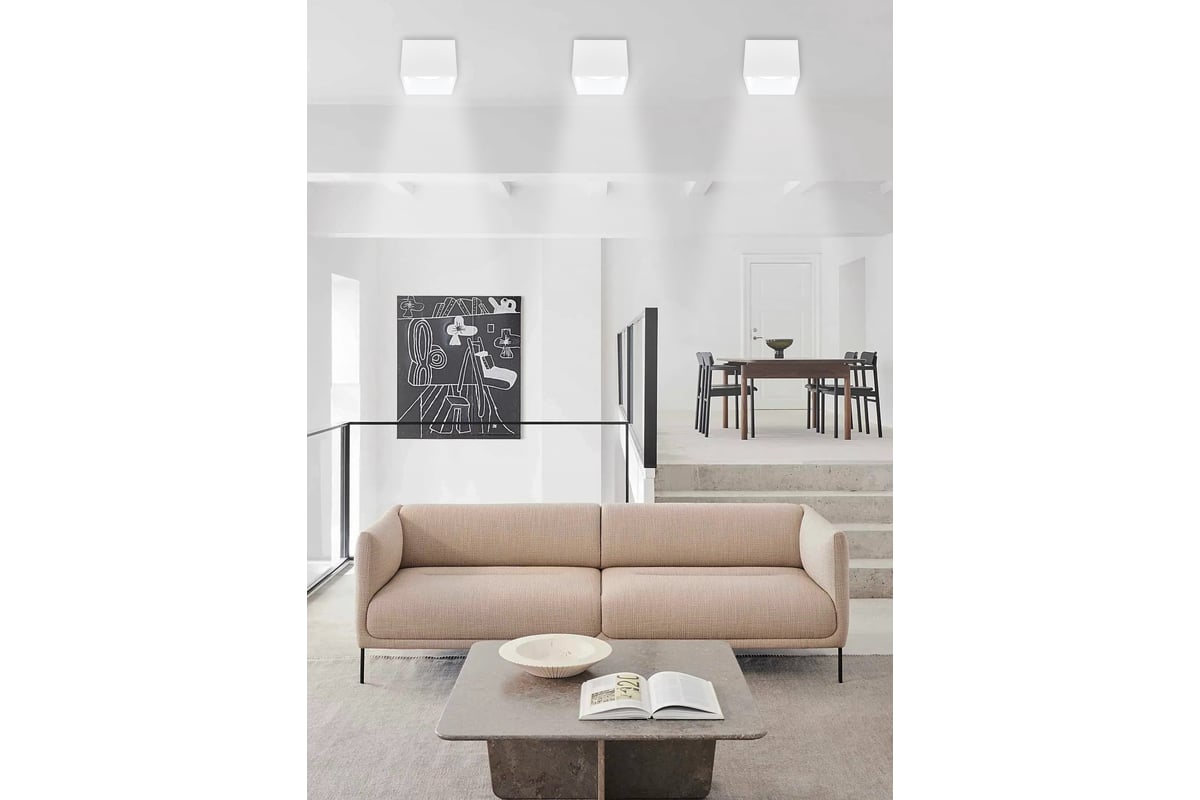 Благодаря кубической форме светильника, свечение лампы распределяется ярко и равномерно, что позволяет получить больше света от использования одной лампочки, чем от применения нескольких точечных светильников.