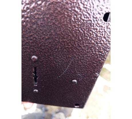 Полубрак какой-то: торцы ригелей оцинкованы прямо с заусенцами без всяких фасок, отверстие под ключ (в центре) просверлено как-будто от руки. При закрывании заедает уже с "завода". "Пломба" от разборки замка наклеена на масло, поэтому "многоразовая".