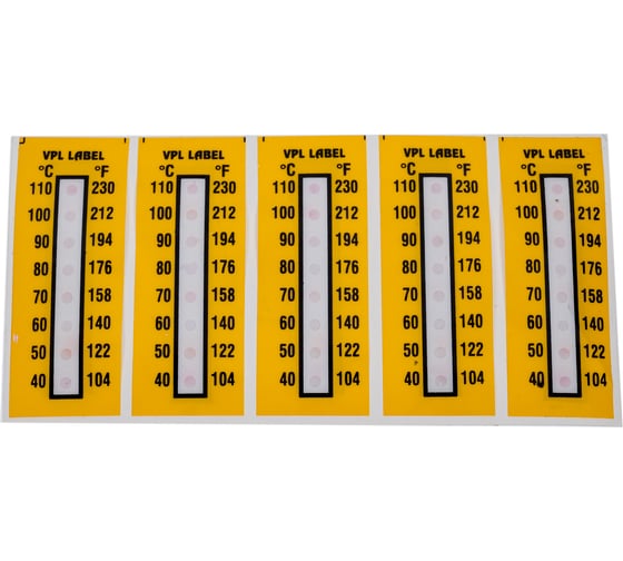 Наклейка термоиндикаторная необратимая Thermolabel (40C-50C-60C-70C-80C-90C-100C-110C), упаковка 50 штук VPLH6 используется в качестве простого, экономичного и точного инструмента для измерения максимальной температуры в процессе эксплуатации изделий и электрических соединений. Термоиндикаторные наклейки также называют термополоска, термонаклейка, температурная наклейка, температурная этикетка и просто термоиндикатор.
