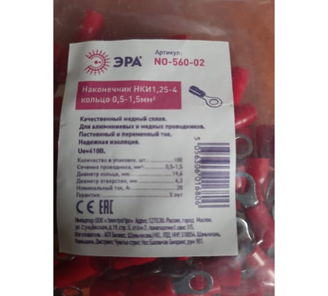Отзывы о наконечнике ЭРА NO56002, НКИ 1, 25-4 кольцо 0,5-1,5мм, 20/240/5760 Б0041439