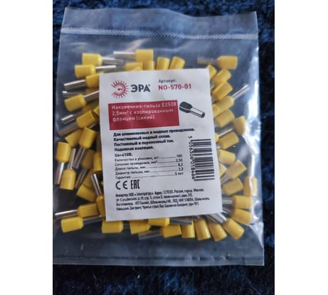 Отзывы о наконечнике-гильзе ЭРА NO-570-01 с изолированным фланцем Е2508 2,5мм2 Б0041455