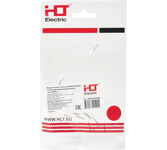 Наконечник-гильза HLT Е0508 0.5 кв.мм с изолированным фланцем 20шт. (60уп./уп.) 084-04-321