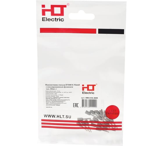 Наконечник-гильза HLT Е7508 0,75 кв.мм с изолированным фланцем 20шт. (50уп./уп.) 084-04-339