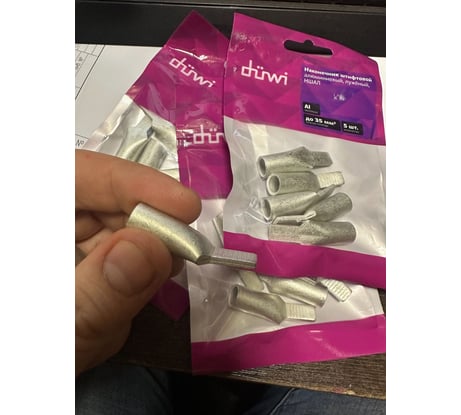 1. наконечник заказан под кабель 35 квадратов. На упаковке написано, что он под 35 квадратов Сечение штифта указано и на сайте и на упаковке 5х7 мм (т.е. 35 кв мм) По факту в упаковке лежат маленькие наконечники на 16 кв мм (сечение штифта 2,35х7 на фото) Если кто-то сдуру туда обожмёт кабель 35 и даст расчётную нагрузку, то он отгорит быстро и устроит пожар в шкафу. 2. Не настолько критично, но на фото наконечники прямые, а по факту - угловые. Если монтаж провода возможен только по прямой, то они просто не влезут. 3. по внешнему виду они ещё и нелужёные. Цвет как у простого матового алюминия, никакого олова там нет
