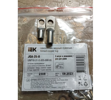 Наконечник медный луженый IEK jga-25-8 (тмл) (5шт/упак) UNP10-31-O-025-008-05 На страницу товара247 ₽