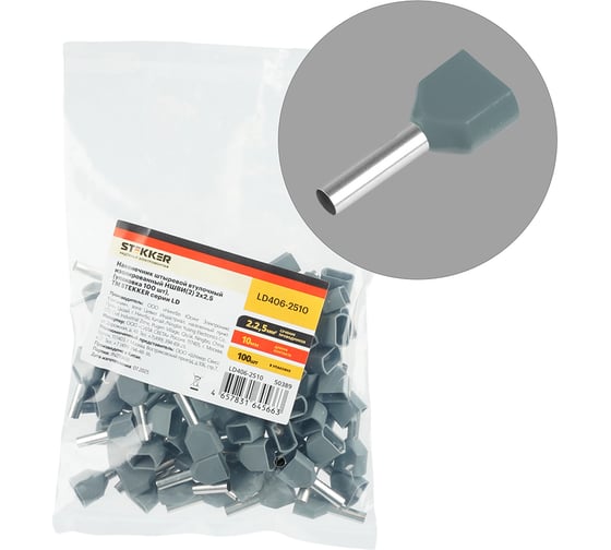 Кабельные наконечники НШВИ(2) применяются для оконцевания многожильных медных сдвоенных проводников и подготовки их к подключению в различных областях: подключение розеток, выключателей, автоматов и УЗО и пр. Цвет: серый Сечение: 2х2,5