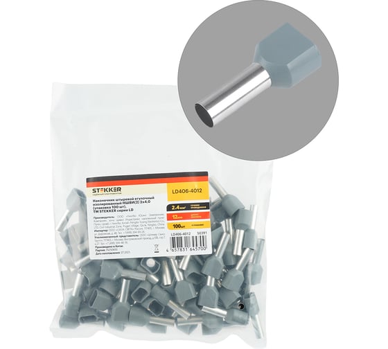 Кабельные наконечники НШВИ(2) применяются для оконцевания многожильных медных сдвоенных проводников и подготовки их к подключению в различных областях: подключение розеток, выключателей, автоматов и УЗО и пр. Цвет: серый Сечение: 2х4