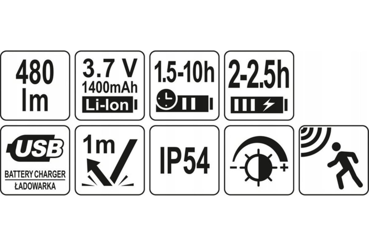 Налобный аккумуляторный фонарь YATO 480лм (датчик движения) YT-08592