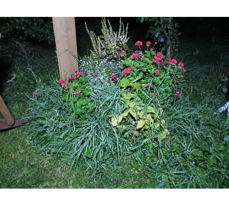 Афигительный фонарик. Покупался на дачу, чтобы использовать когда уже стемнело, а инструмент еще не убран и сараи не закрыты. В отличие от классических фонариков освещает широким фронтом и очень ярко. По участку ходишь как днем. Прикладываю фотографию, сделанную в безлунную ночь без вспышки (с выключенным фонариком на фотографии просто черный квадрат Малевича).