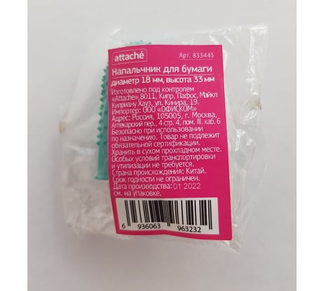 Напальчник для бумаги Attache d=18 мм, высота 33 мм, резина 833443