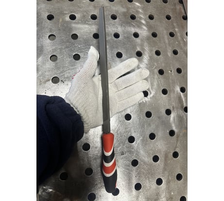 Напильник в принипе нормальный. Хваткая прорезиненная ручка. Отлично пилит металл, но происходит выкрашивание зубьев с кантов, на советских напильниках такого не было.