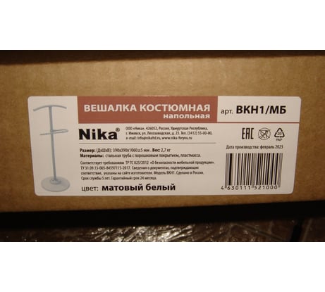 Сопутствующие товары для вешалки Nika НИКА ВКН1 ВКН1/МБ матовый белый