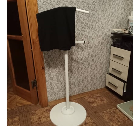 В целом хорошее наружное исполнение, стоит на ровном полу устойчиво. Точная высота вешалки от пола - 106,5 см. Ширина плечиков - 39 см. Основание - диск из пластика с подвнутренним прямоугольным стальным грузилом. Вес товара в картонной коробке - 3,45 кг., укладка негромоздкая, коробку мужчине можно унести под мышкой. Разумная цена данного товара, думаю, должна быть в пределах 530 руб.