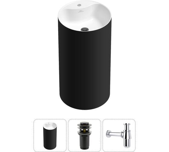 Напольная раковина отдельностоящая Wellsee Chalice Perfection в наборе 3 в 1, раковина-моноблок из акрила, цвет матовый черный / белый глянец 20213019R