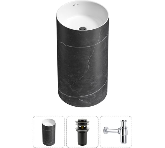 Напольная раковина отдельностоящая Wellsee Chalice Perfection в наборе 3 в 1, раковина-моноблок из акрила, цвет матовый черный / белый глянец 20213021R
