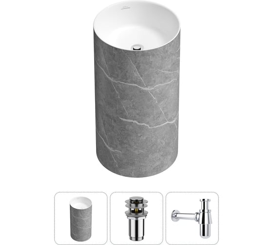 Напольная раковина отдельностоящая Wellsee Chalice Perfection в наборе 3 в 1, раковина-моноблок из акрила, цвет матовый серый мрамор / белый глянец 20212931R