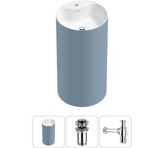 Напольная раковина отдельностоящая Wellsee Chalice Perfection в наборе 3 в 1, раковина-моноблок из акрила, цвет матовый светло-синий / белый глянец 20213085R