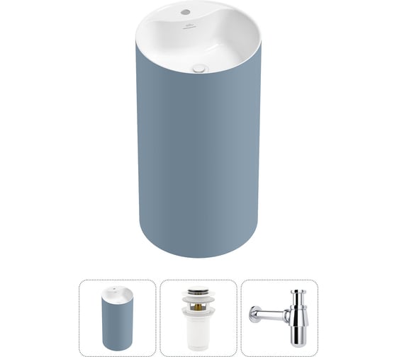 Напольная раковина отдельностоящая Wellsee Chalice Perfection в наборе 3 в 1, раковина-моноблок из акрила, цвет матовый светло-синий / белый глянец 20213087R