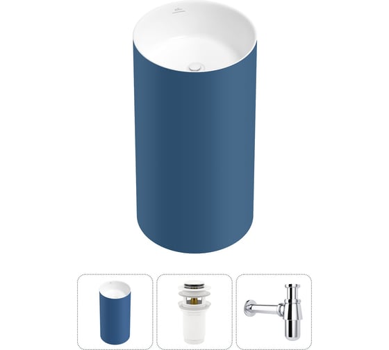 Напольная раковина отдельностоящая Wellsee Chalice Perfection в наборе 3 в 1, раковина-моноблок из акрила, цвет матовый темно-синий / белый глянец 20212969R