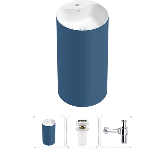 Напольная раковина отдельностоящая Wellsee Chalice Perfection в наборе 3 в 1, раковина-моноблок из акрила, цвет матовый темно-синий / белый глянец 20213099R