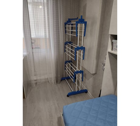Сушилка супер удобная, места занимает мало. Из всех вариантов для квартиры — лучший по функционалу и цене. Колёсики реально помогают при перестановке.