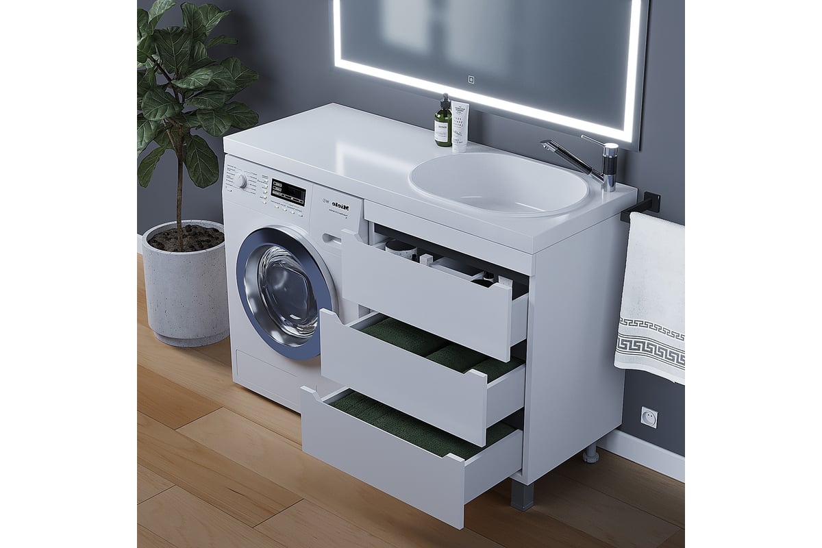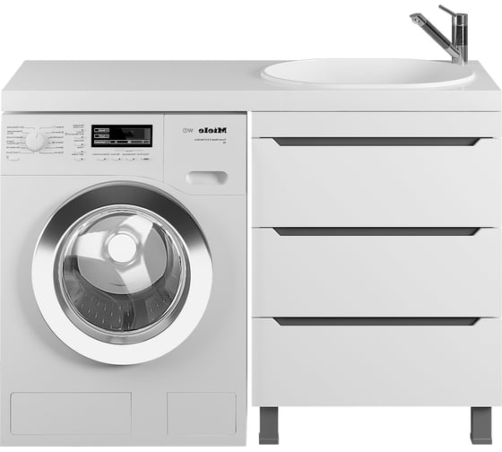 Напольная тумба под стиральную машину uperwood Tanos 60 см, с раковиной Bruks 120 см, правая, белая/графит 291021012 с выдвижными ящиками представляет собой функциональное, надежное и практичное решение, которое отлично впишется в любой современный дизайн ванной комнаты.