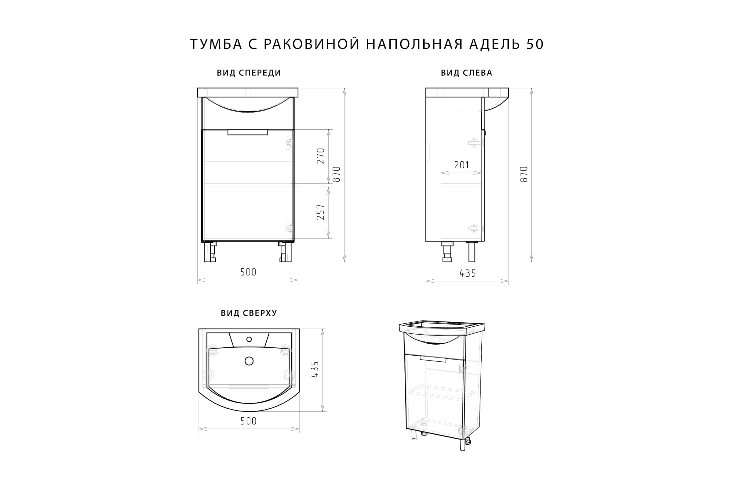 Напольная тумба с раковиной ИТАНА Nrava Aqua Адель 50 500х435х870 33566