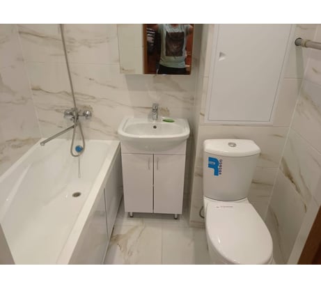 Неплохой эконом-вариант для компактного санузла. Сборка без особых проблем, комплектность полная, приятно, что есть доводчики дверок. Кстати, покрытия защищено транспортировочной пленкой, для такой цены даже удивительно. Из минусов - к сожалению, раковина немного вертолетом - полностью не ложится на тумбу, один край поднимается. И проверить это при получении, увы, не получится, т.к. тумба нужна уже в сборе. Ну, и если придираться - переливное отверстие внутри кривоватое, типа зазубрин... Некритично, но неприятненько. Т.е., по тумбе без претензий, а вот раковина 2-3 сорт, я бы сказала. Хотя сама форма неплохая - она глубокая, но компактная.