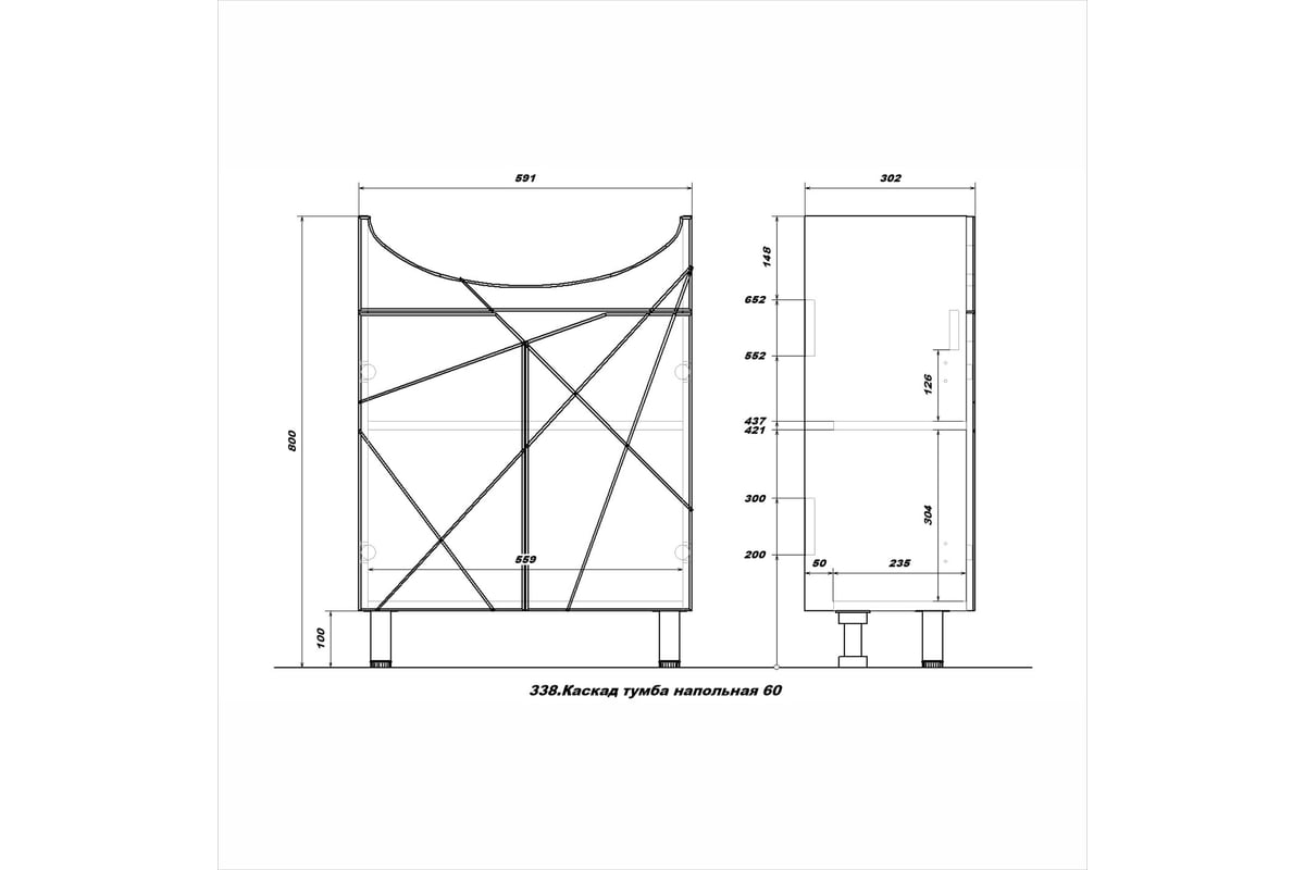 Тумба напольная Sanstar Каскад 60 Без раковины для ванной комнаты 338.1-1.4.1