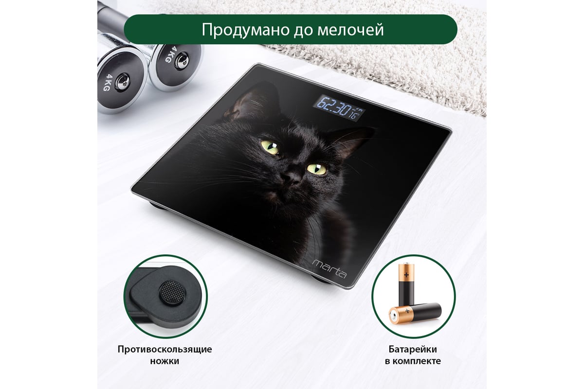 Напольные весы MARTA MT-1608 черный кот, сенсор, встроенный термометр 37239