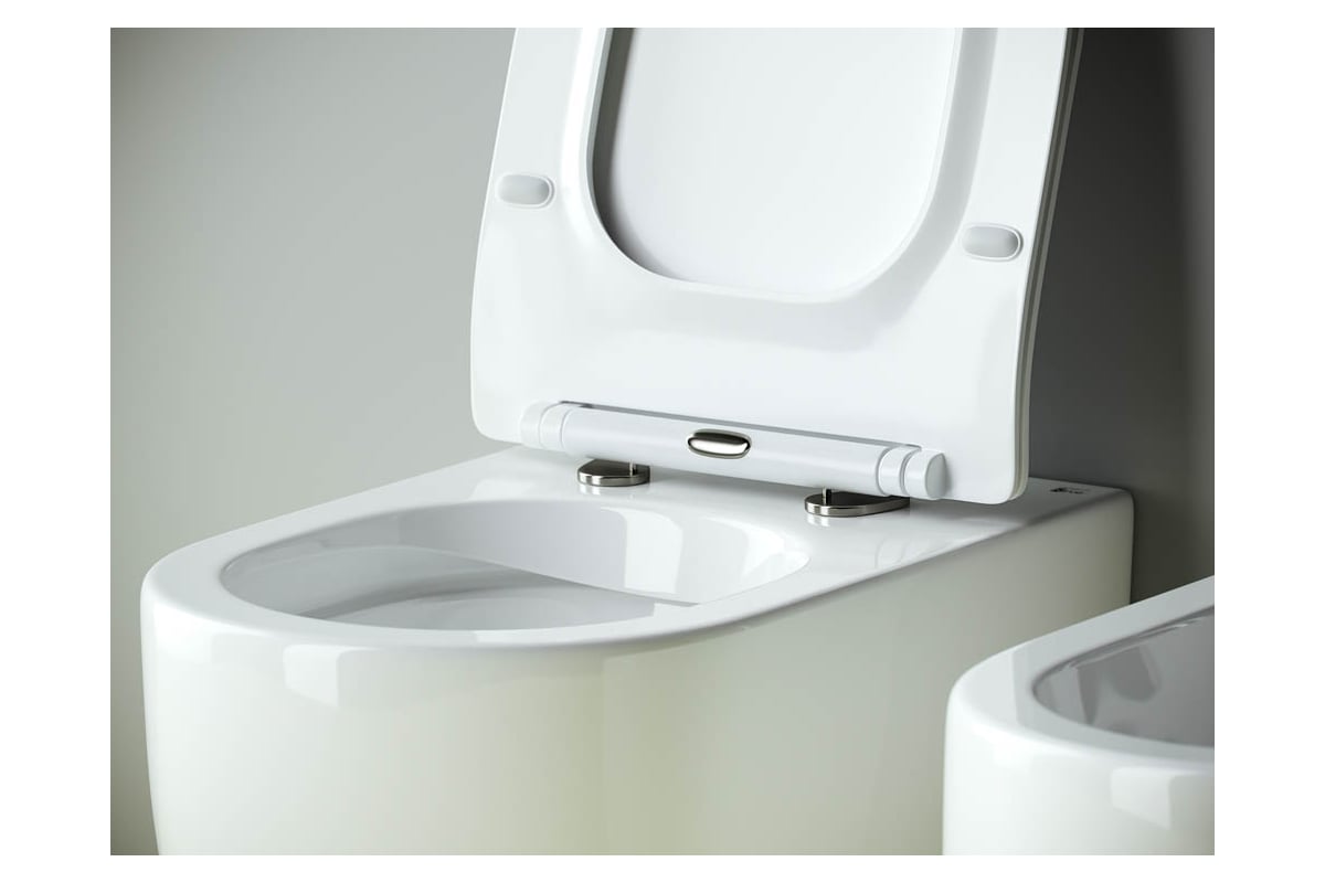 Напольный пристенный унитаз-соло Ceramicanova Metropol Rimless, глубокий смыв, горизонтальный (универсальный) выпуск, с крепежом, ультра тонким с сидением и крышкой CN4004MB