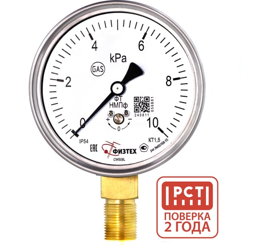 Напоромер (манометр низкого давления) ПО Физтех, АО НМПф 0-10 кПа кт.1,5 d.100 IP54 G1/2 РШ 4687205178701
