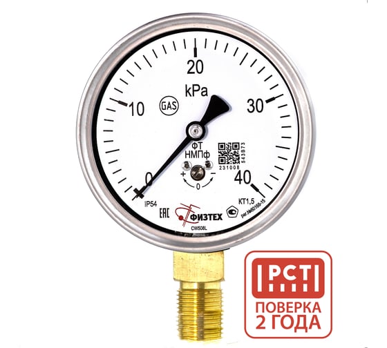Напоромер (манометр низкого давления) ПО Физтех, АО НМПф 0-40 кПа кт.1,5 d.100 IP54 M20_1,5 РШ 4687205633484