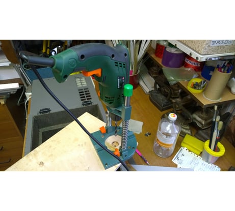Вещь одноразовая, взял потому что других вариантов не было, а нужно было в домашних условиях просверлить отверстия в фанере 18 мм как можно точнее под углом 90 градусов
