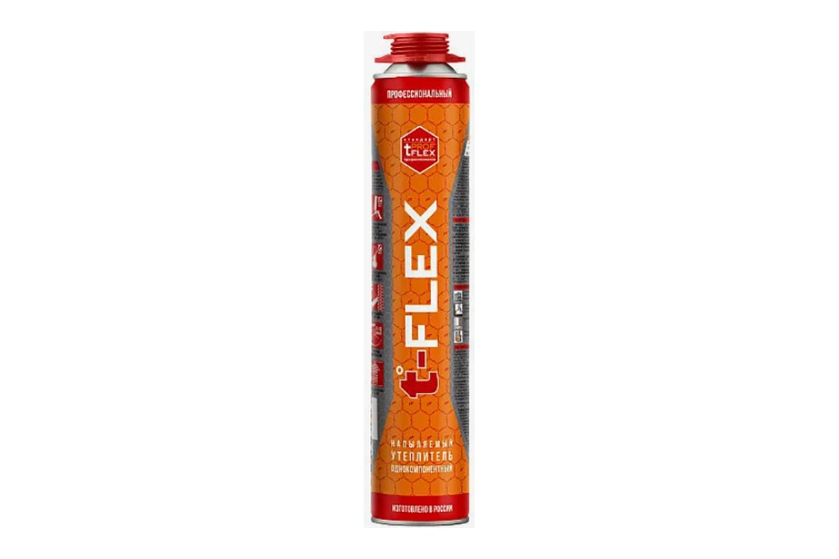 Напыляемый утеплитель t-FLEX - универсальный однокомпонентный полиуретановый аэрозоль-спрей – применяется для утепления строительных конструкций, помещений бытового и хозяйственного назначения. Утеплитель может быть нанесен на любую поверхность, включая вертикальные поверхности и поверхности с отрицательным наклоном (внутренние поверхности скатов крыш и т.п.). Идеально подходит для небольших помещений. Может также применяться в качестве вспомогательного утеплителя для нанесения на неровные и геометрически неправильные поверхности, а также где технически тяжело применить листовые утеплители.