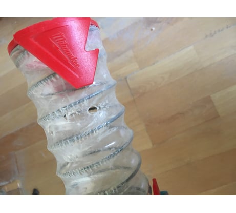Просверлил около 100 отверстий, и как у многих пользователей помимо прожжённой полиэтиленовой гофры, выломалось металлическое кольцо из оправки. Сейчас мозгую, как его починить, если это вообще реально. Сама конструкция пылеотвода довольно не плохая, но для такой серьёзной фирмы как Милуоки, это не позволительны просчеты. За такие деньги, могли бы продумать более надёжную конструкцию этого узла.