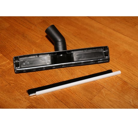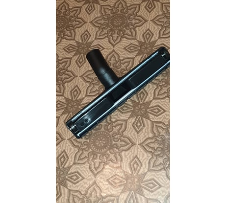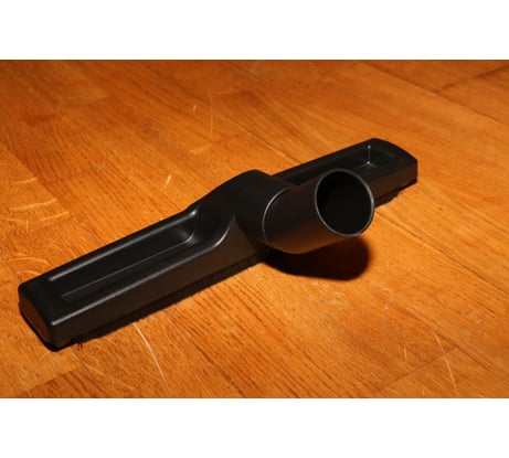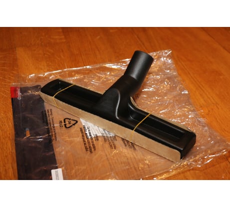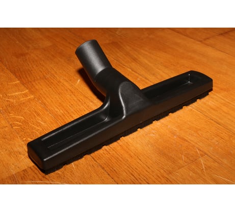 Хорошая щетка от именитого бренда. Ворс в меру жесткий, по длине в самый раз. Отлично собирает сухую пыль. Колеса обрезинены, и если не нужны, то их можно легко снять. Посадочный диаметр 35 мм. Угол наклона патрубка для некоторых пылесосов может оказаться недостаточным, все зависит от длины телескопической трубы и изгиба на детали с гибким шлангом. Если расстояние от насадки до руки будет менее 1,2 м, то придется наклоняться ниже комфортного, чтоб насадка прижималась к полу под нужным углом и нормально пыль собирала