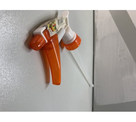 Взял на пробу 5 разных распылителей, этот выглядел крепче всех, больше всего пластика, в руке сидит хорошо, но на этом всё. К бутылке прилегает не плотно, из под него выливается. По непонятной причине при попытке распылить - выливается из под рычага прямо на пальцы. Цвет пришел красный, на фото синий