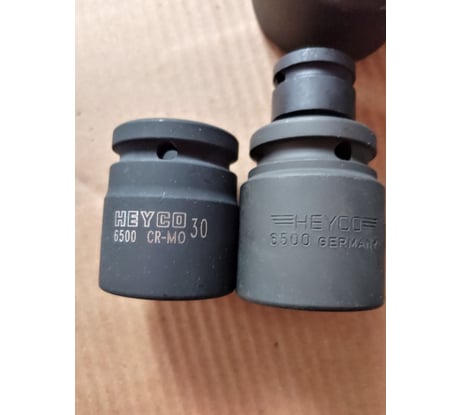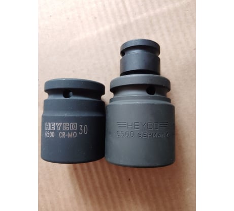 Маркировка головки конкретно на 30 мм сделана лазером и без характерных крыльев из трех полосок (см. на фото слева). Где произведено - нет данных. Это может быть и Ирландия, конечно, но подозреваю, что, скорее, Китай. На фото можно сравнить с тем, как выглядеть должен инструмент Heyco Germany (та, что справа, она на 32 мм, в нее воткнут переходник).