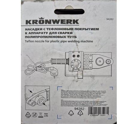 Технические характеристики насадок к аппарату для сварки полипропиленовых труб KRONWERK 94282