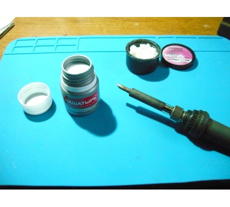 Жало паяльника любит чиститься в этом нашатыре. Рекомендую.