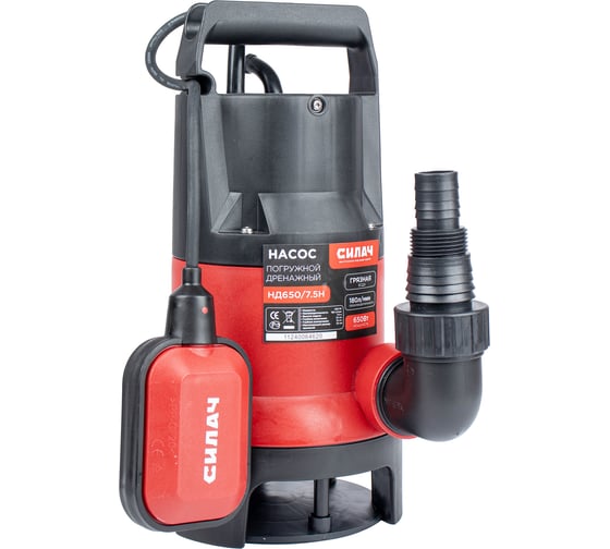 Насос для грязной воды СИЛАЧ НД 650/7.5Н (650Вт, макс.произ.180л/мин, макс высота подъема 7,5м)нар. попл. (4/80) 023898