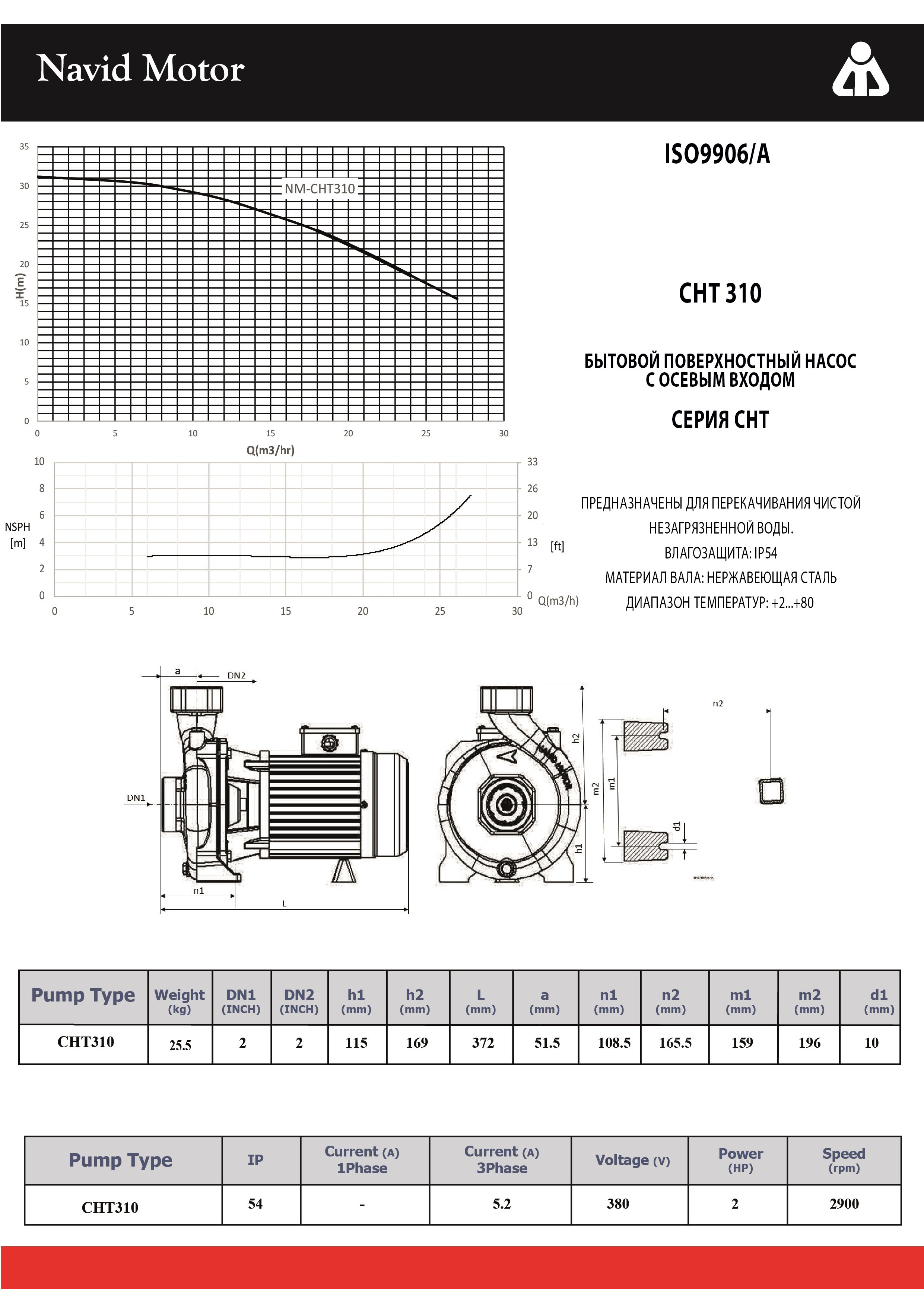 Насос NAVIDMOTOR (3 HP) CHT 310 дв. 2.2 квт 380В