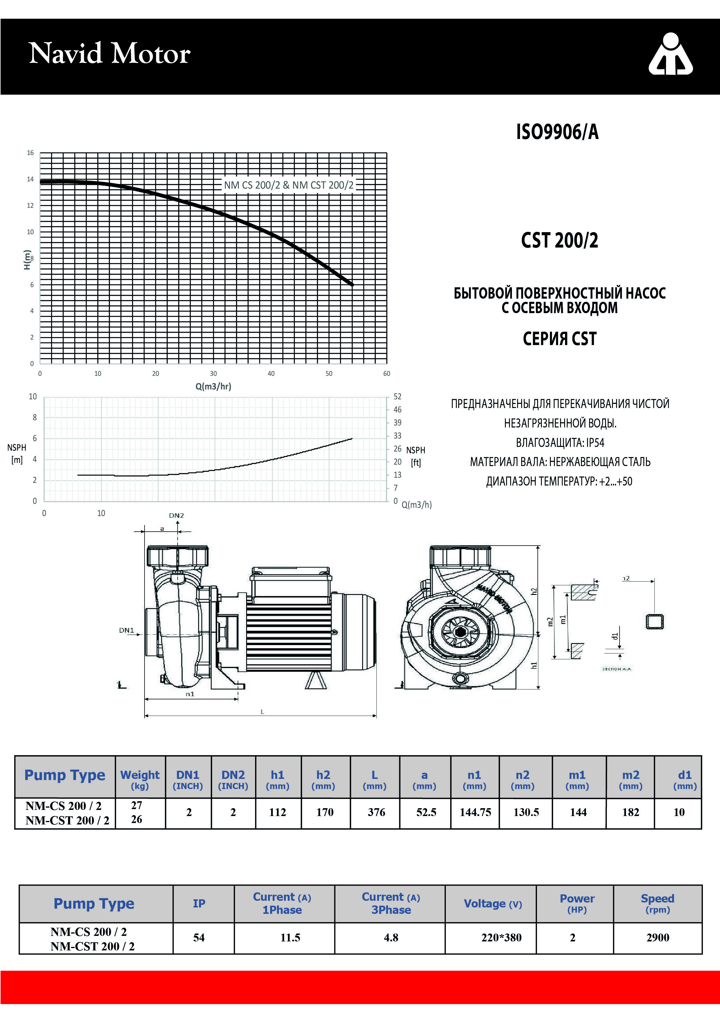 Насос NAVIDMOTOR CST 200/2 дв. 1.5 квт 380В ( 2 HP)
